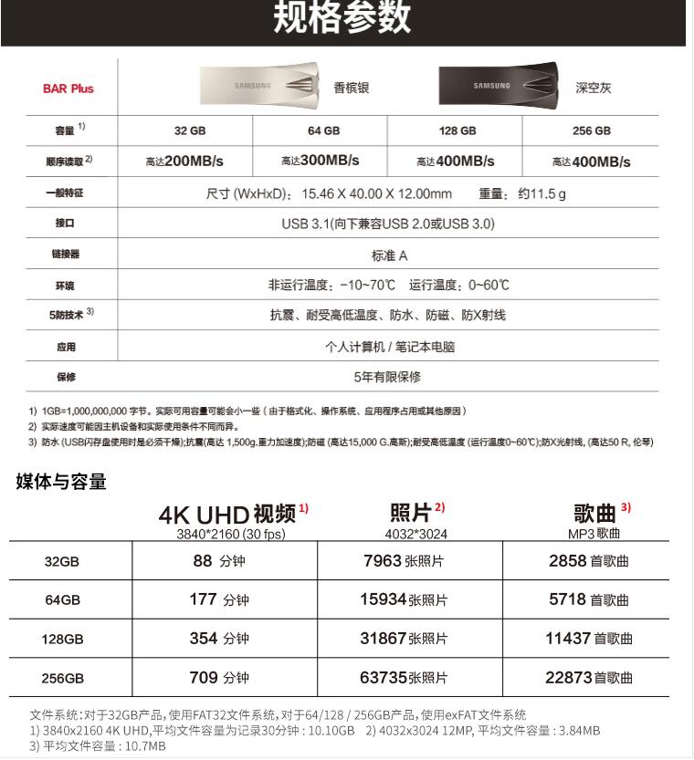 三星Bar PLUS金屬U盤32G閃存盤USB3.1 可定制LOGO圖案讀速200MB/s