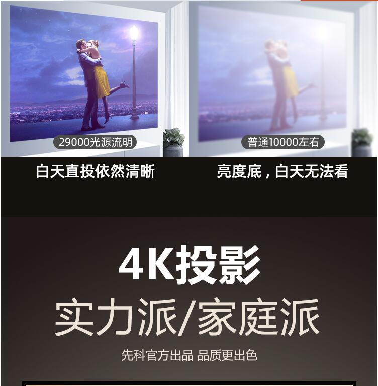 先科家用投影儀4K超高清家庭影院白天培訓(xùn)手機辦公室用會議投影機